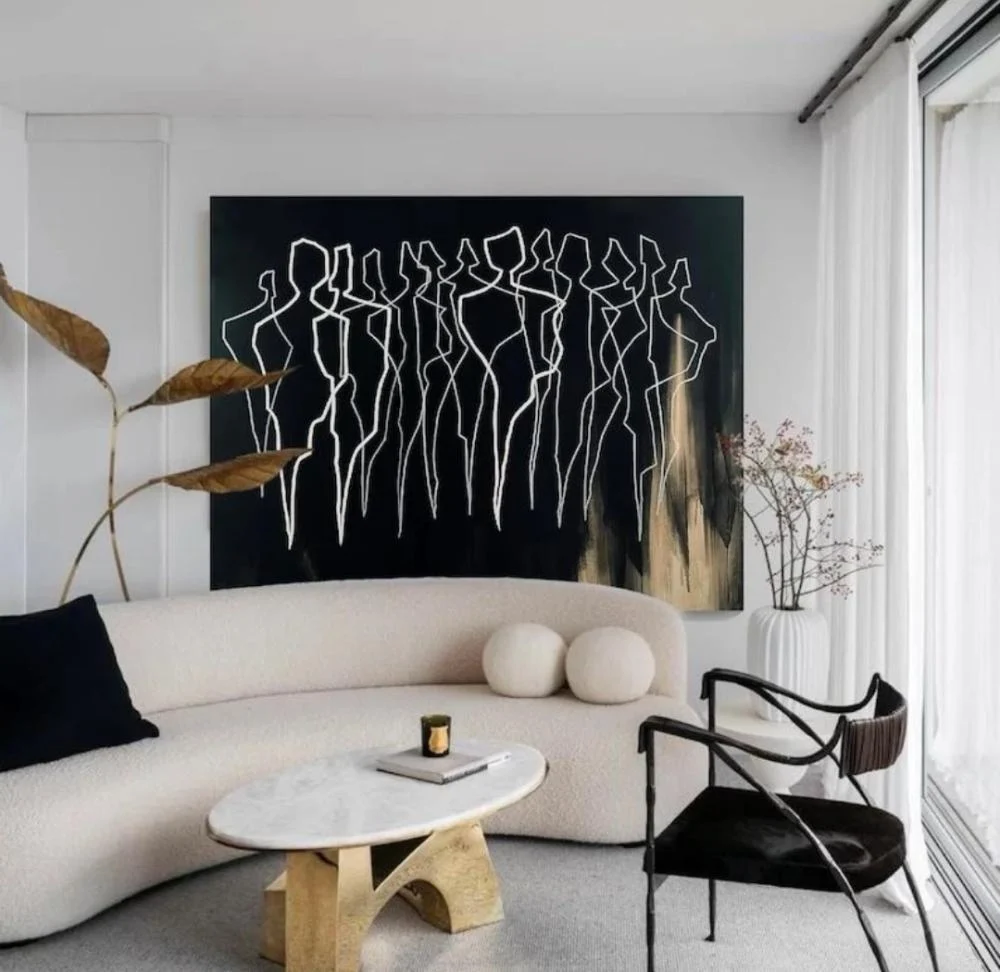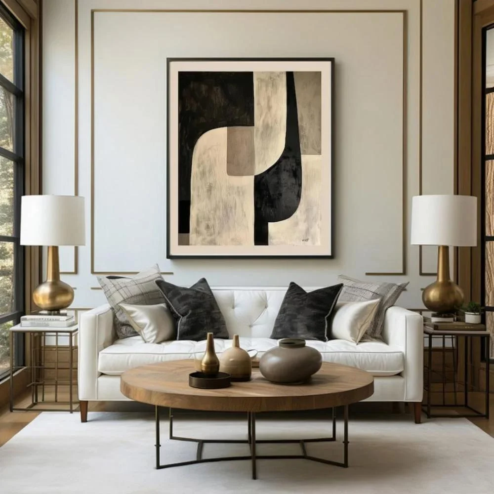 - يمكن تنسيق عدة لوحات معًا لتكوين جدار فني متكامل (Gallery Wall).